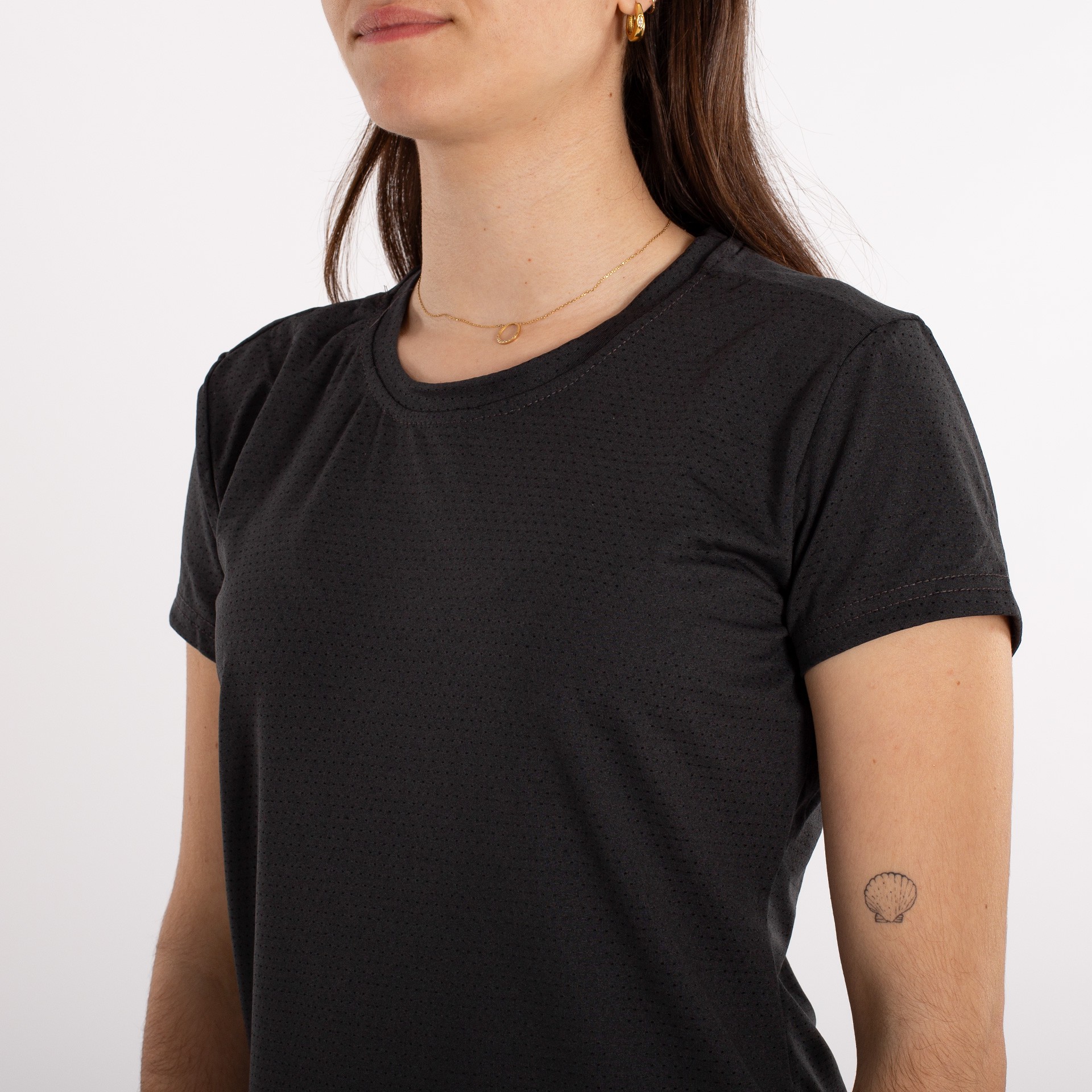 Camiseta técnica de manga corta y cuello redondo. Diseñada especialmente para entrenamientos deportivos pero también para darle un toque deportivo a tu look de verano.