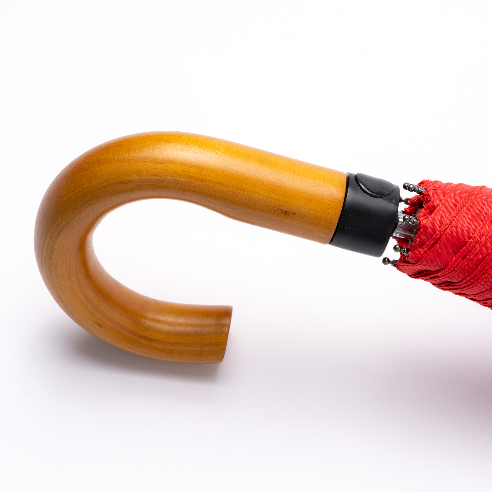 El mango de madera natural le da un toque de estilo y calidez al paraguas, brindando una sensación natural y cómoda al agarrarlo. Además, el paraguas cuenta con un botón de apertura automática para facilitar su uso y un cierre con velcro para un almacenamiento seguro.