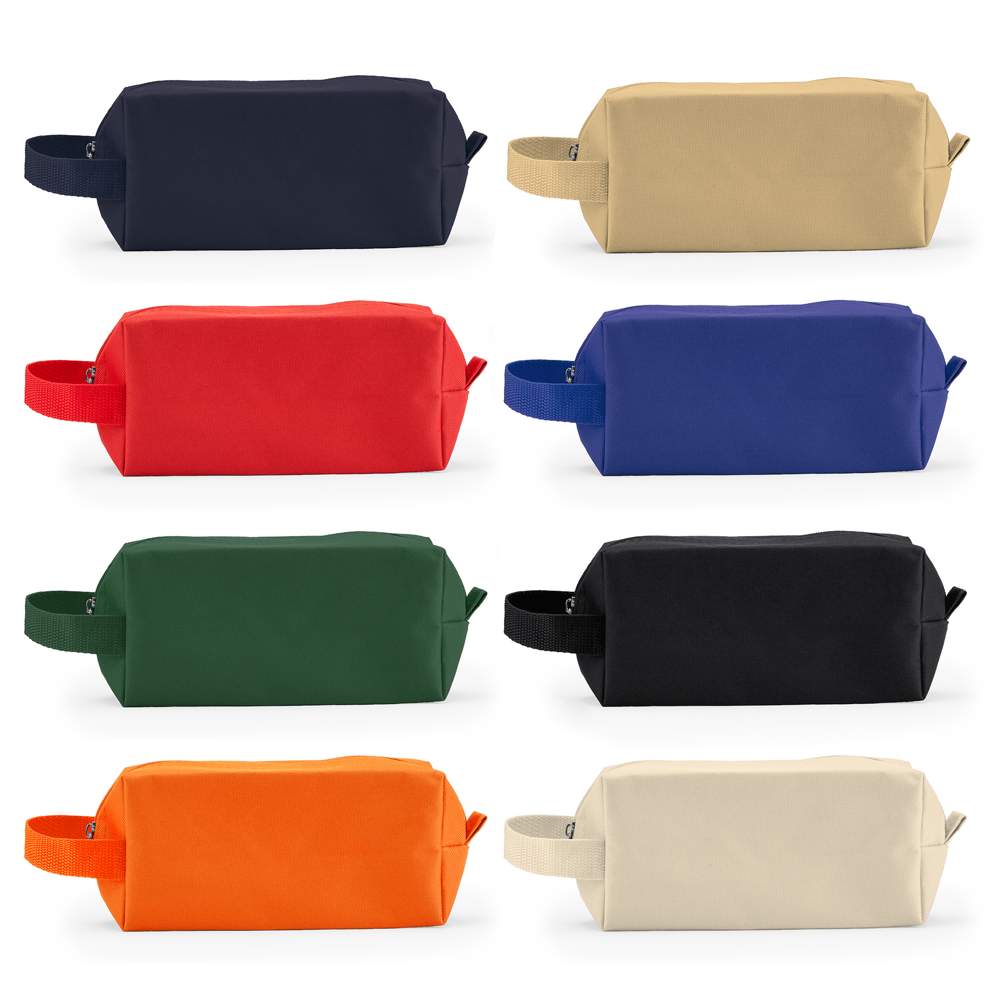 Neceser de poliéster 600D con cremallera y práctica asa de transporte.
