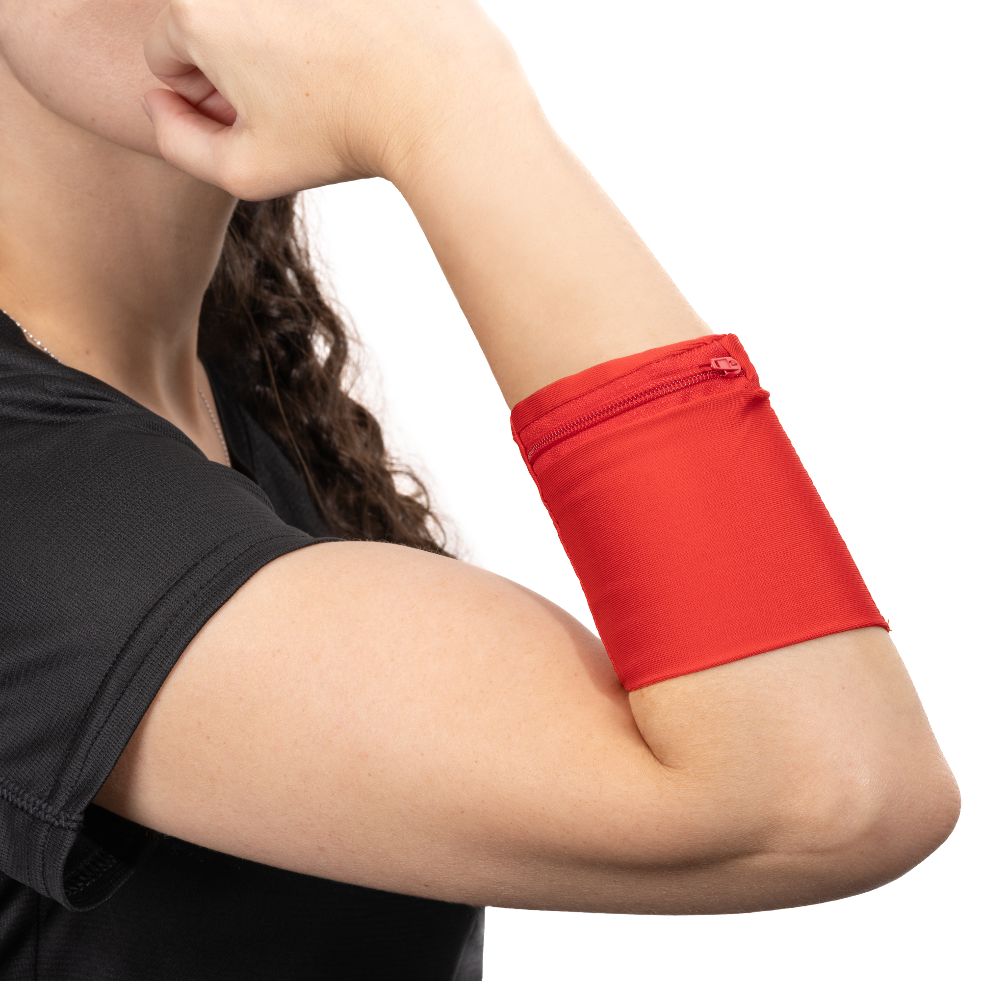 Muñequera elástica con bolsillo con cierre de cremallera a juego.