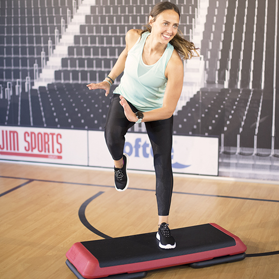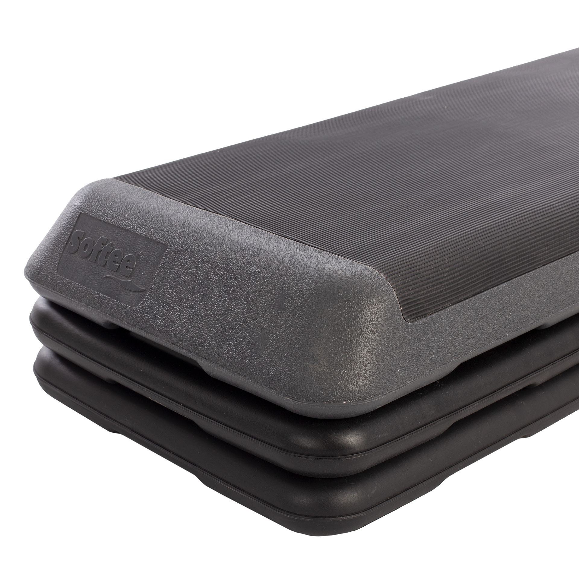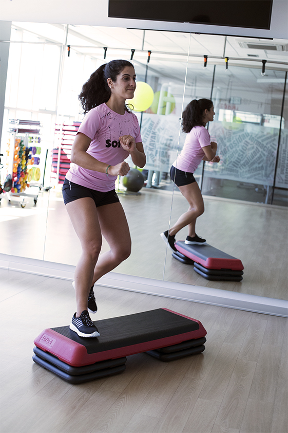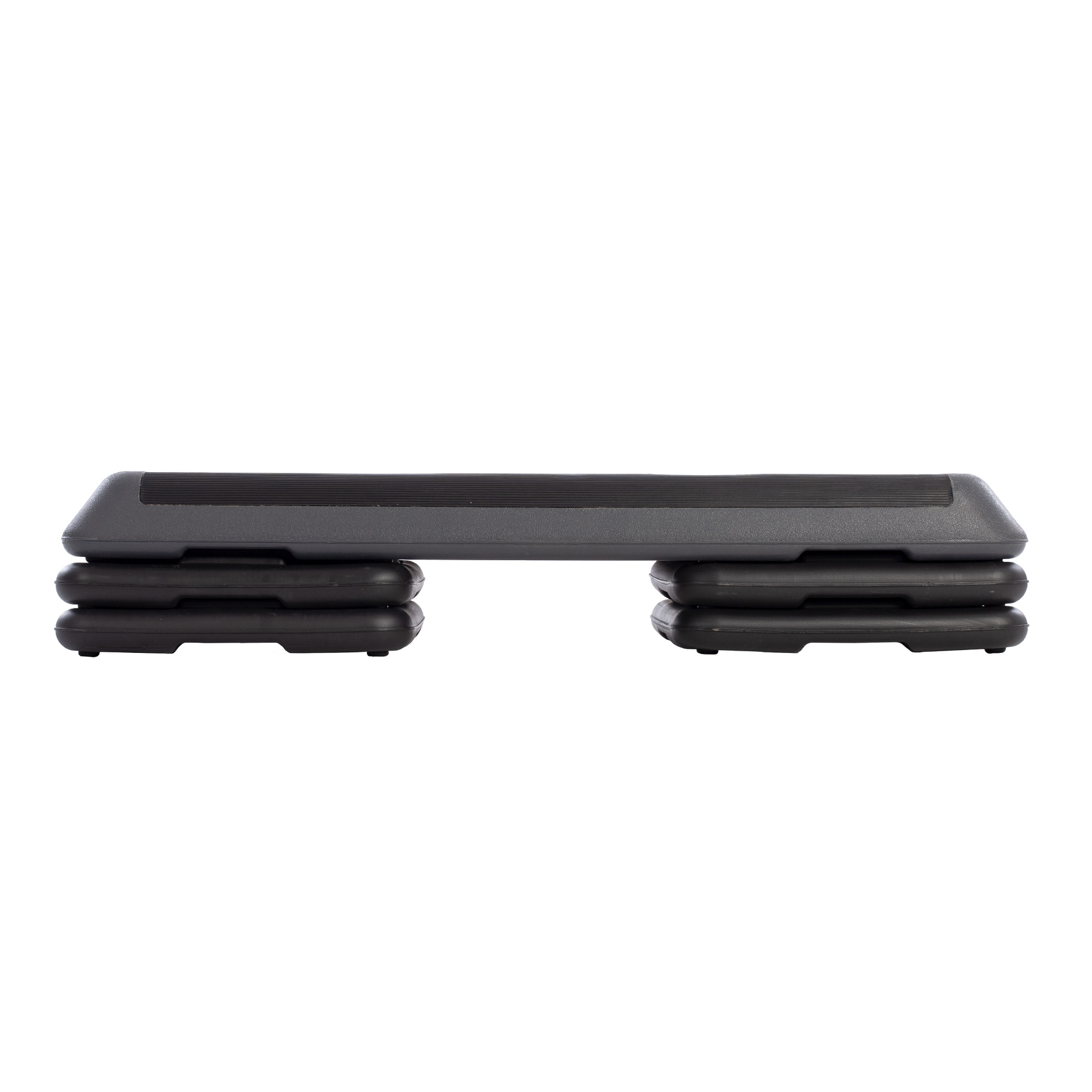 Plataforma aeróbica para ganar fuerza y tonificar. Cuenta con superficie texturizada para un mayor agarre. Puede incluir dos o cuatro pies con topes de goma para una mayor estabilidad. Medidas: 110x42cm. Alto con un pie: 15cm. Alto con dos pies: 20cm.