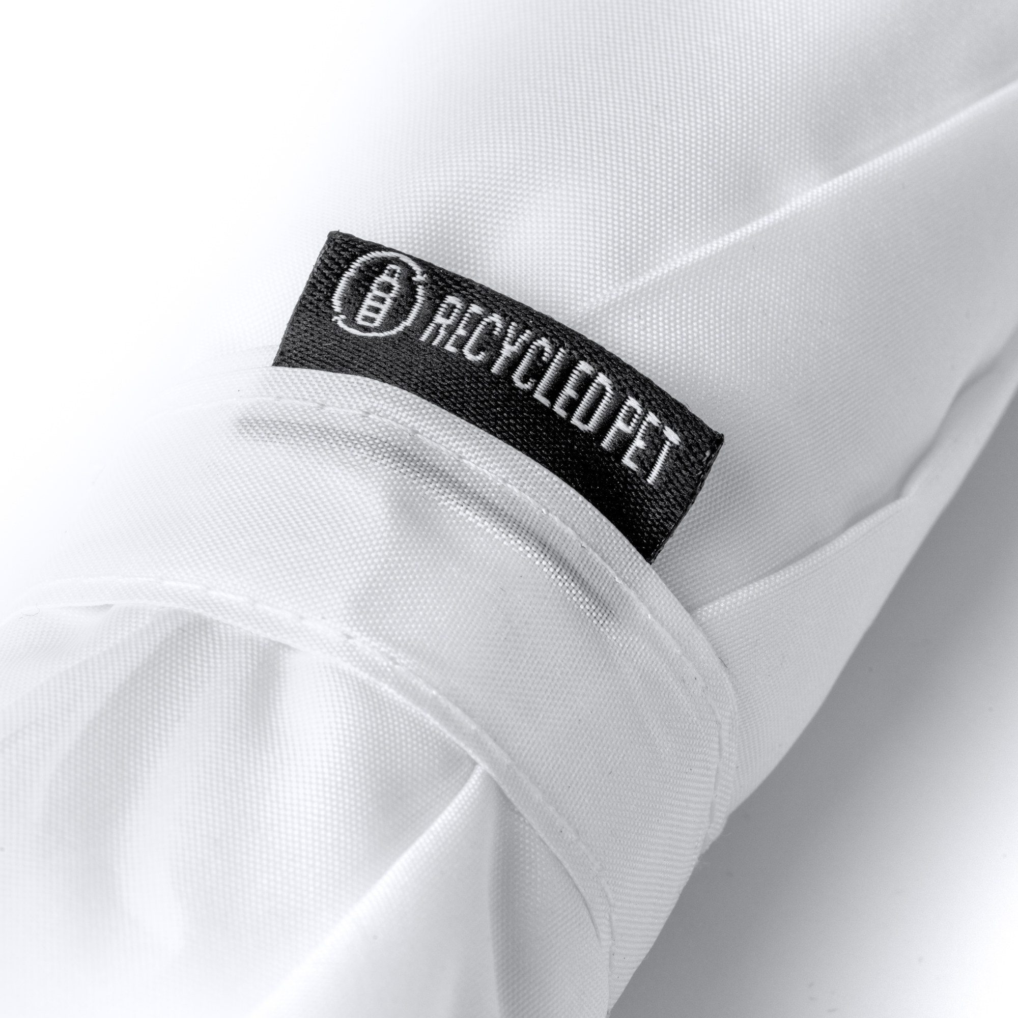 El paraguas con mango, estructura y detalles de bambú ofrece apertura automática y tejido RPET pongee 190T antiviento. Perfecto para protegerse con estilo y sostenibilidad.